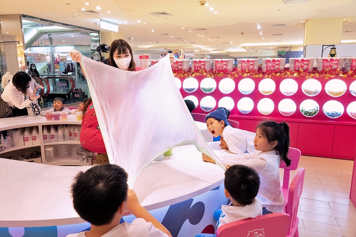 來現場有老師帶著你一起體驗史萊姆各種玩法