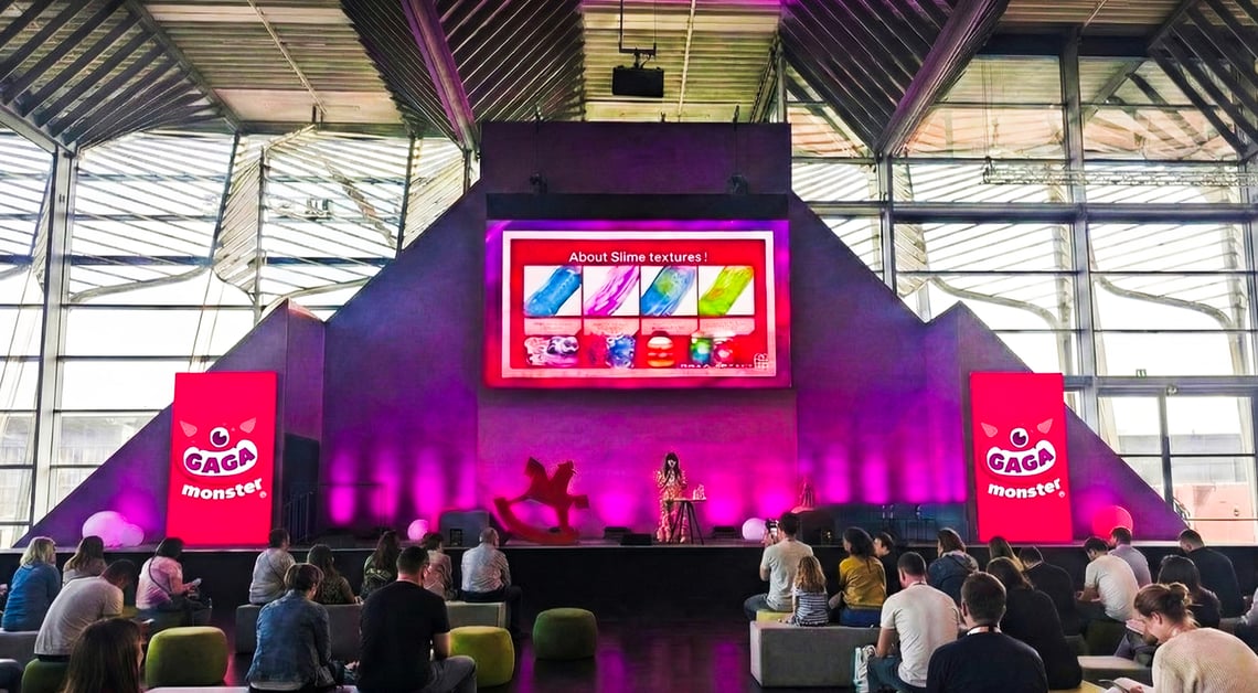 除了登台分享與產業交流,GAGA monster 亦於 Spielwarenmesse 2026 期間參與展會官方規劃的 Walking Acts 活動。透過走入展館動線、與現場觀眾進行直接且親密的互動,GAGA monster 以史萊姆 DIY 體驗作為溝通媒介,讓品牌理念不再只是被觀看,而是被實際感受。此種跳脫傳統展攤形式的呈現方式,不僅有效吸引現場目光,也展現品牌在親子體驗與感官教育領域中的創新思維,成功以具體行動深化國際觀眾對 GAGA monster 品牌形象的認識。