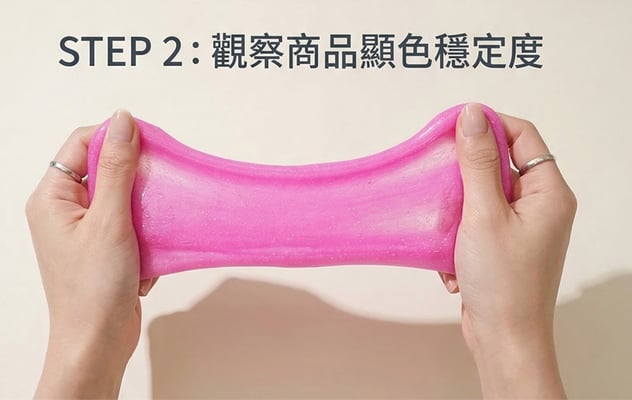 觀察史萊姆在拉伸或揉捏時,顏色是否會直接沾染在手上。