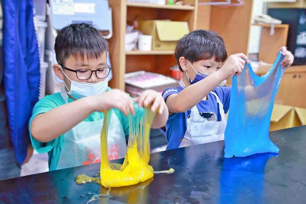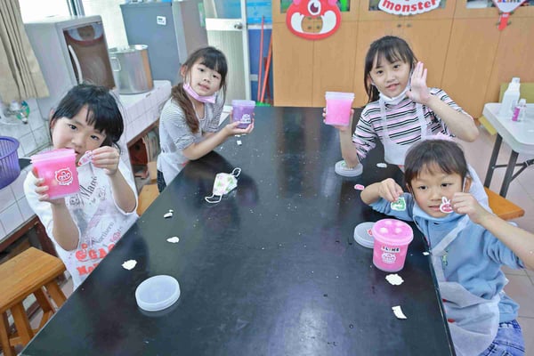 當GAGAmonster的專業老師們展示如何製作史萊姆時,孩子們的眼睛裡閃爍著好奇與興奮的光芒。