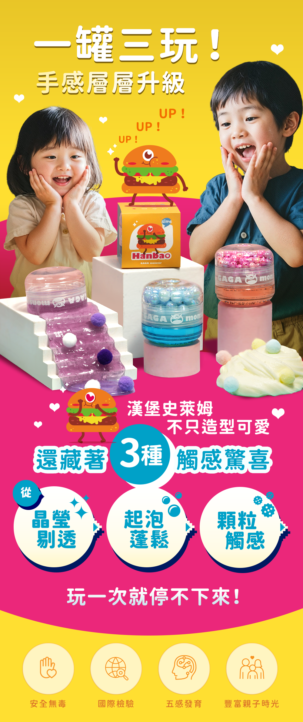A:GAGA史萊姆已通過SGS安全認證,完全不含硼砂、重金屬等有害物質,讓孩子玩得更安心。幾歲以上可以玩?需要家長陪同嗎?